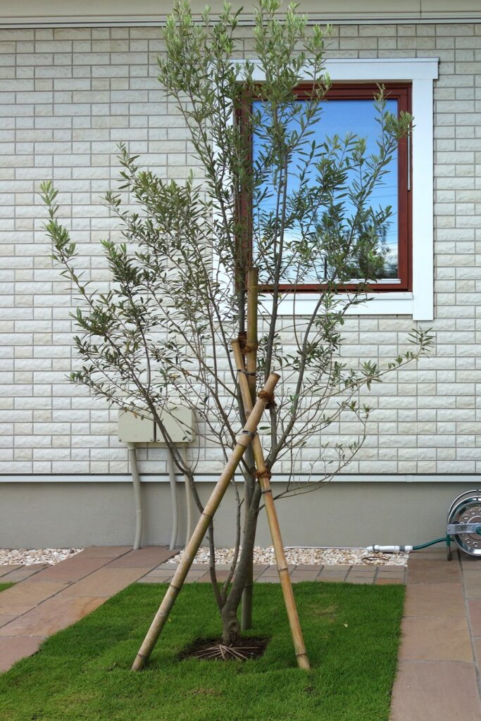 特に苗木のうちは風にあおられやすいので、支えもしっかり付けてあげてください。
